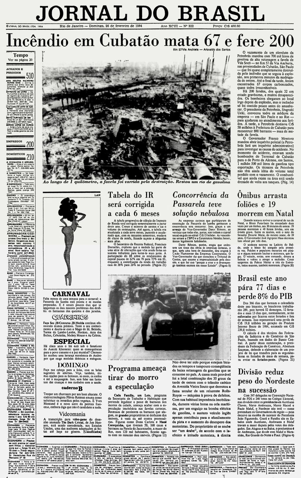 Nos dias e meses seguintes à tragédia, Cubatão foi o principal assunto nacional. Um batalhão inédito de jornalistas e equipes de rádio e TV se revezavam para informar ao País e ao mundo os desobramentos do episódio. Revistas tiveram que interromper a impressão de suas edições especiais de Carnaval para atualizar seus noticiários da semana. O cinza invadia as capas outrora coloridas.