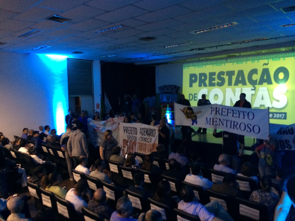 Logo depois, um evento de prestação de contas da Prefeitura de Cubatão virou o palco de mais um momento surreal.