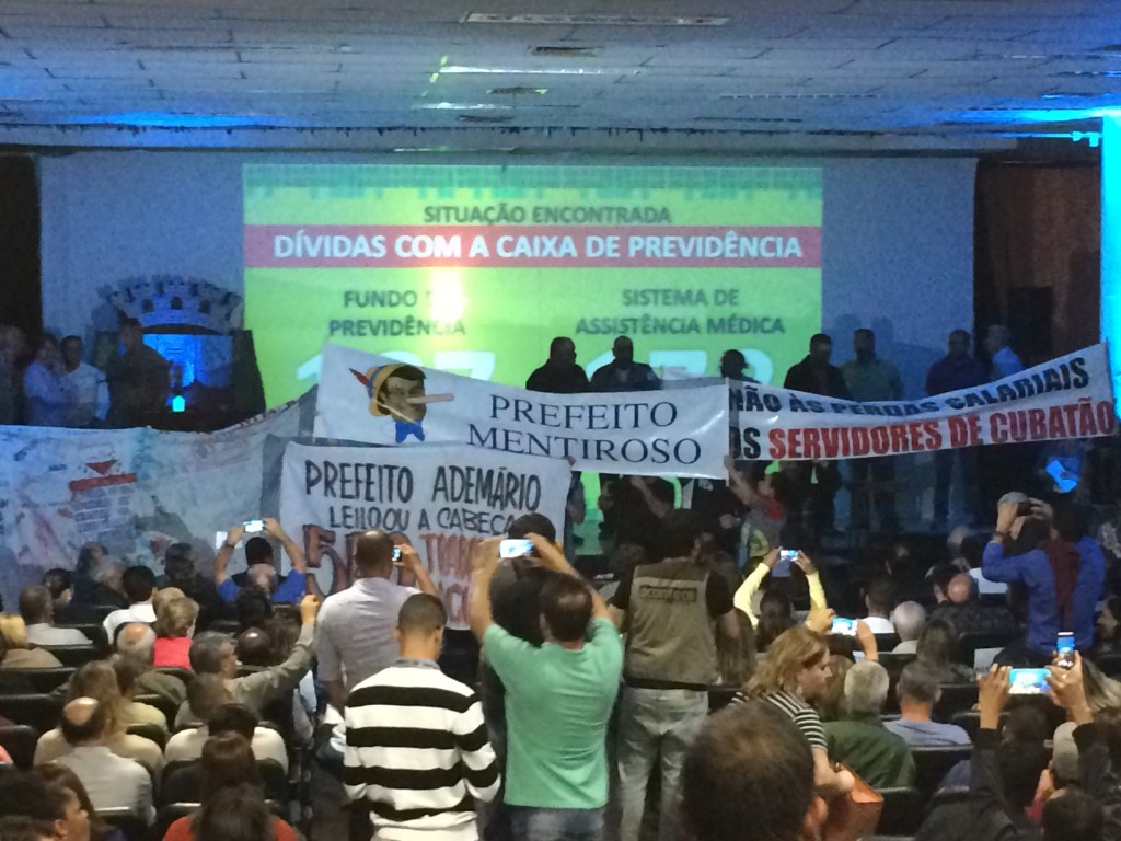 Logo depois, um evento de prestação de contas da Prefeitura de Cubatão virou o palco de mais um momento surreal.